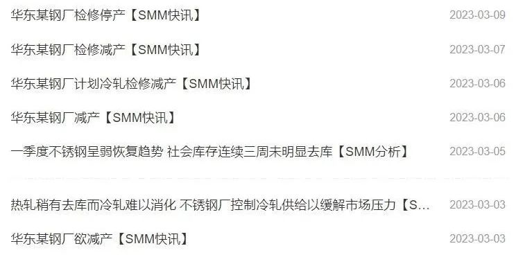 据SMM消息,近一周华东有多家钢厂停产、减产。