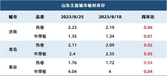板材库存方面,济南地区热卷库存2.23万吨,较上周微增0.04万吨;中厚板库存1.35万吨,较上周增加0.01万吨。青岛热卷库存2.11万吨,较上周增加0.02万吨。泰安热卷库存1.76万吨,较上周增加0.04;中厚板库存4.04万吨,较上周增加0.04万吨。