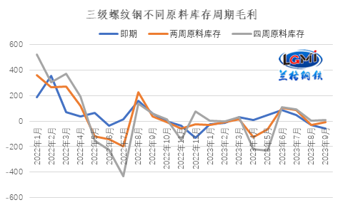 图2 三级螺纹钢不同原料库存周期毛利水平变化