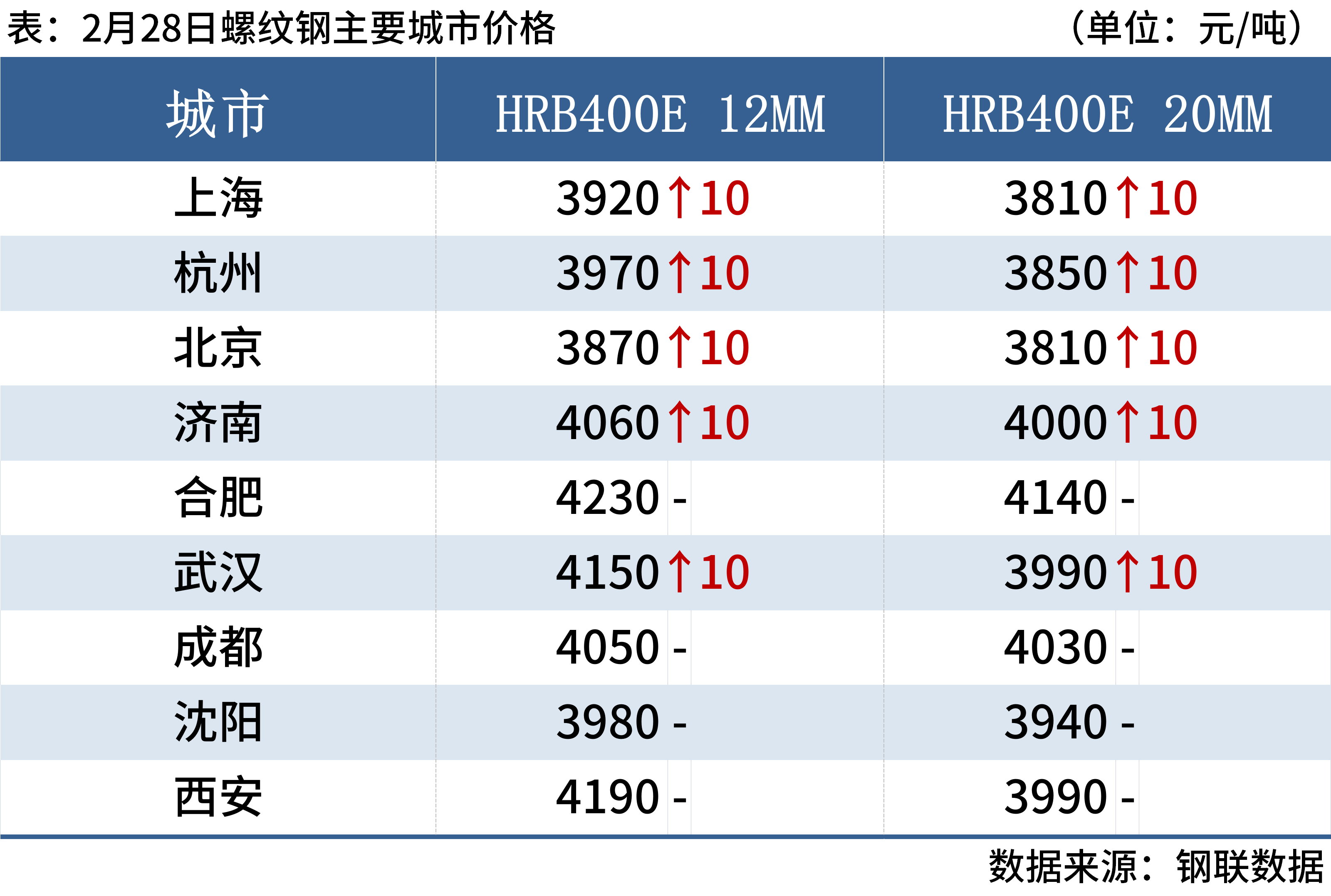 螺纹钢:2月28日,全国31个主要城市20mm三级抗震螺纹钢均价3997元/吨,较上个交易日涨3元/吨。短期来看,目前电炉复产在即,但部分高炉有减产情况,产量维持低位;节后需求整体恢复并不乐观,尤其是新开工及复工数据偏差。同时焦炭提降等原料下跌,成本支撑不足。因此从基本面来看,市场仍然处于偏弱格局。需关注宏观方面的利好预期,对市场信心或有一定提振,预计29日国内建筑钢材市场价格或将继续震荡为主。