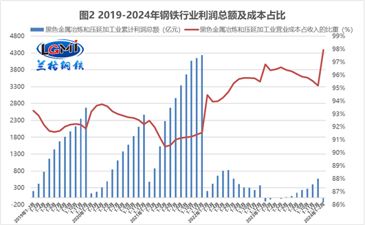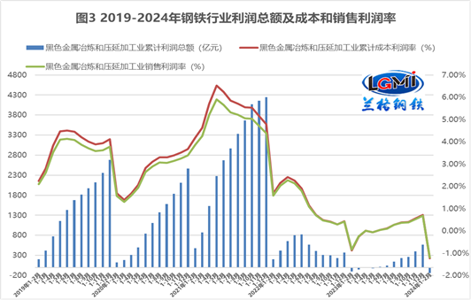 2024年开年以来,由于受到了政策预期带动、春节假期影响以及需求淡季效应等因素的共同影响,国内钢材市场呈现高位震荡回落的行情,钢厂面临了较大的亏损压力。2024年1-2月黑色金属冶炼和压延加工业亏损146.1亿元,较去年同期增亏45.1亿元,也成为了25年以来钢铁行业“最差”开年业绩。
