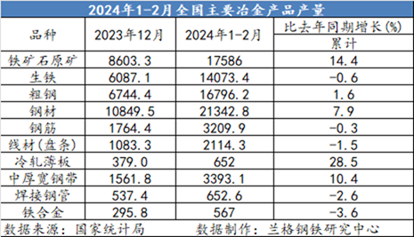 表2?2024年1-2月全国钢铁下游工业产品产量