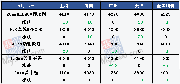 ◎建材成交量:5月23日,Mysteel全国贸易商建材日成交量17.05万吨,较5月22日减少1.47万吨。