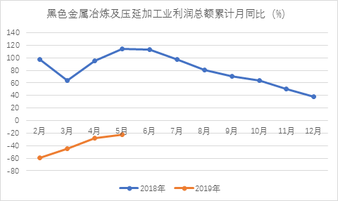 整体行业来看,统计局数据显示,今年 1~5月黑色金属冶炼及压延加工业利润累计同比虽有小幅回升,但降速仍高于20%。相比去年的红红火火,今年上半年行业表现不佳。