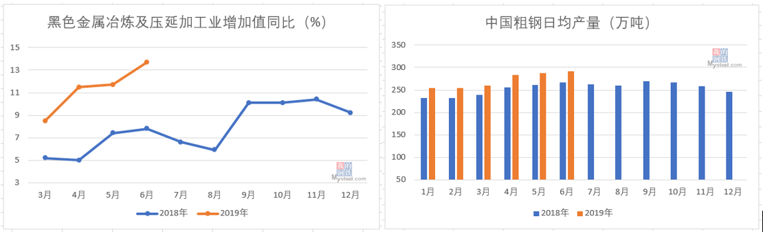 其他原燃料如焦炭、废钢价格同样高位运行。高成本负担之下,粗钢日均产量仍在屡创新高,带动上半年黑色金属冶炼及压延加工业增长值同比增速加快。