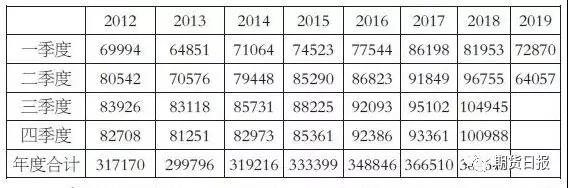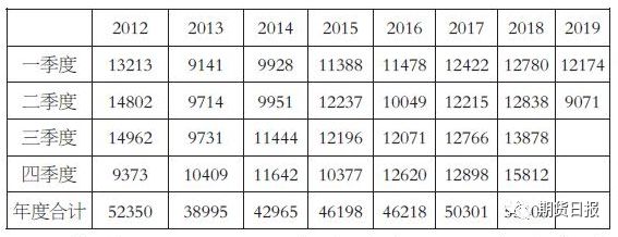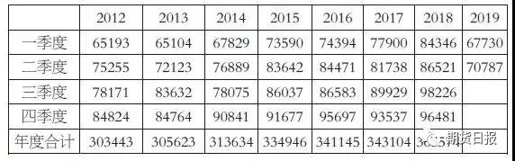 表为2012—2019年上半年Vale铁矿石产量变化(单位:千吨)