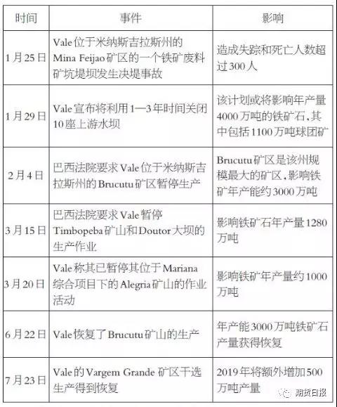 事故发生后,巴西监管机构及Vale陆续采取相关措施,包括资金冻结、罚扣、吊销矿区生产许可证、关停部分矿区、初步达成和解协议和赔偿金等。1月29日,Vale宣布将利用1—3年时间关闭10座上游水坝,该计划或影响年产量4000万吨的铁矿石,其中包括1100万吨球团矿,同时Vale称将增加其他地区铁矿石产量,弥补溃坝矿区停产影响。
