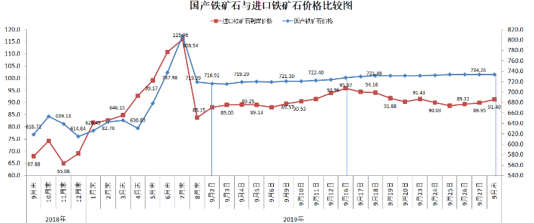 9月份,钢铁行业总体运行平稳。受铁矿石市场供大于求态势的制约,铁矿石价格呈窄幅波动。随着秋冬供暖季限产措施的实施,后期铁矿石市场供大于求态势更为突出,铁矿石价格仍有下行空间。