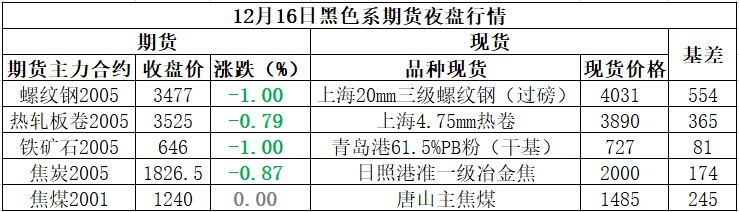 ◎截至12月16日17:00,螺纹钢HRB400 20mm全国均价3964元/吨,跌26元/吨;冷轧板卷1.0mm全国均价4427元/吨,涨6元/吨;4.75热轧板卷全国均价3885元/吨,涨5元/吨。