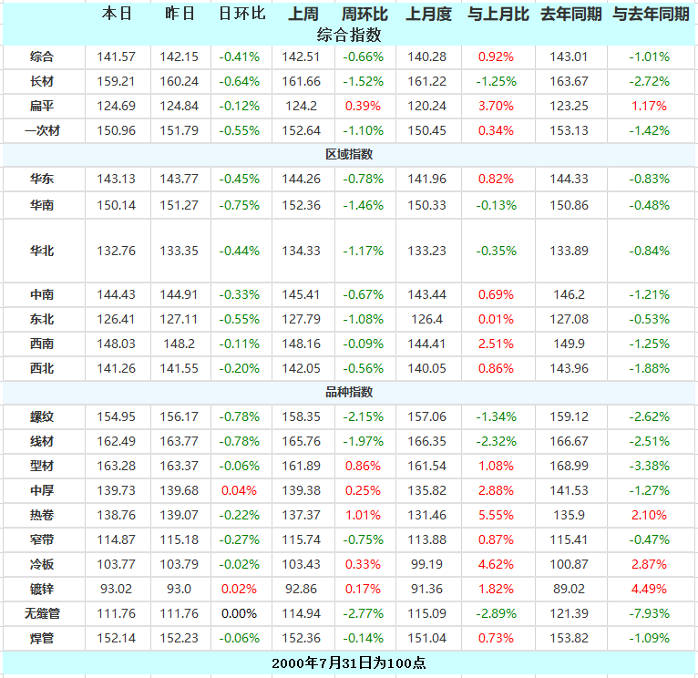 12月17日,国内钢材指数(Myspic)综合指数报141.57(绝对价格指数3999.3),较上一交易日下跌0.41%。其中,螺纹钢指数报154.95(绝对价格指数3916.8),较上一交易日下跌0.78%;热卷指数报138.76(绝对价格指数3890.4),较上一交易日下跌0.22%。