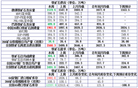 上周,因钢厂补库基本完成,进口铁矿石市场价格先涨后跌。本周来看,澳洲部分港口存在检修,叠加澳巴天气影响,预计整体发运量回升空间有限,但到港量或将有一定增加;需求方面来看,因钢厂补库进入尾声,仅个别钢厂补库计划尚未完成,港口现货成交量将会下降明显;而疏港上受钢厂积极拉货的影响,预计仍将维持高位;贸易商方面,对节后市场比较看了,心态较为乐观,价格坚挺。总体来看,预计本周矿价呈窄幅震荡运行。