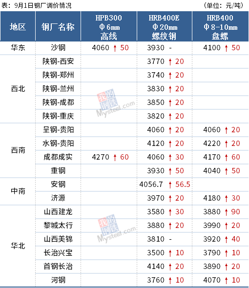 1日,国内14家建材钢厂上调出厂价10-90元/吨。